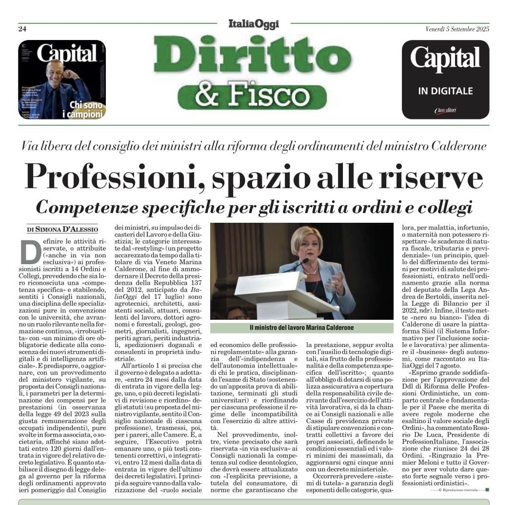 Si informano gli iscritti che è stato presentato al Senato il Disegno di Legge di delega per la riforma della disciplina degli ordinamenti professionali, approvato dal Consiglio dei Ministri il 4 settembre 2025.
