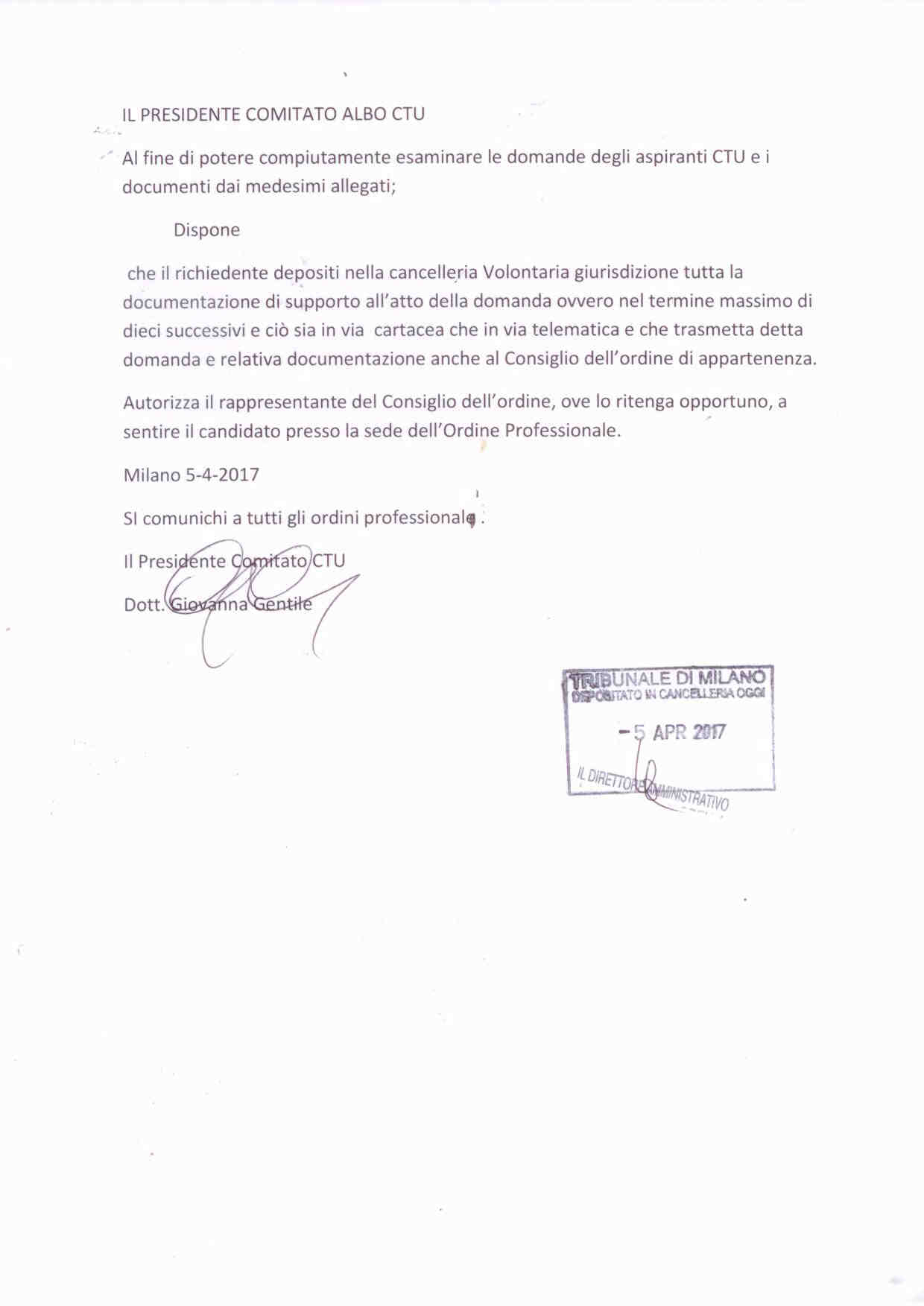PROVVEDIMENTO RELATIVO ALL'ESAME DOMANDE DEGLI ASPIRANTI CTU