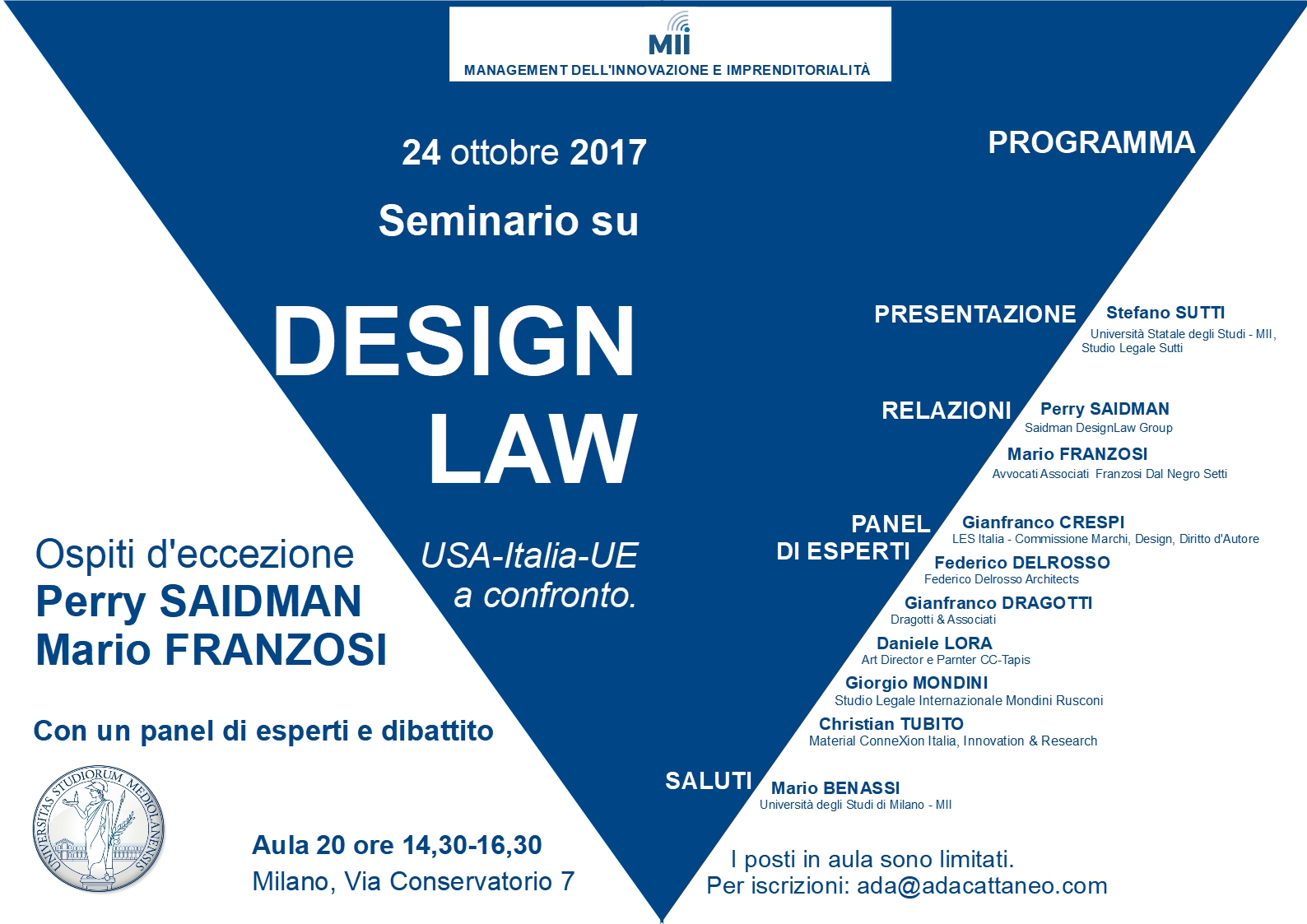 Il seminario, organizzato da Studio Legale Sutti e Avvocati Associati Franzosi Dal Negro Setti, in collaborazione con MII - Management dell'innovazione e Imprenditorialità, si terrà il 24 ottobre 2017 dalle ore 14.30 alle 16.30 presso l’Università degli Studi di Milano - Aula 20 - Via Conservatorio 7 – Milano.