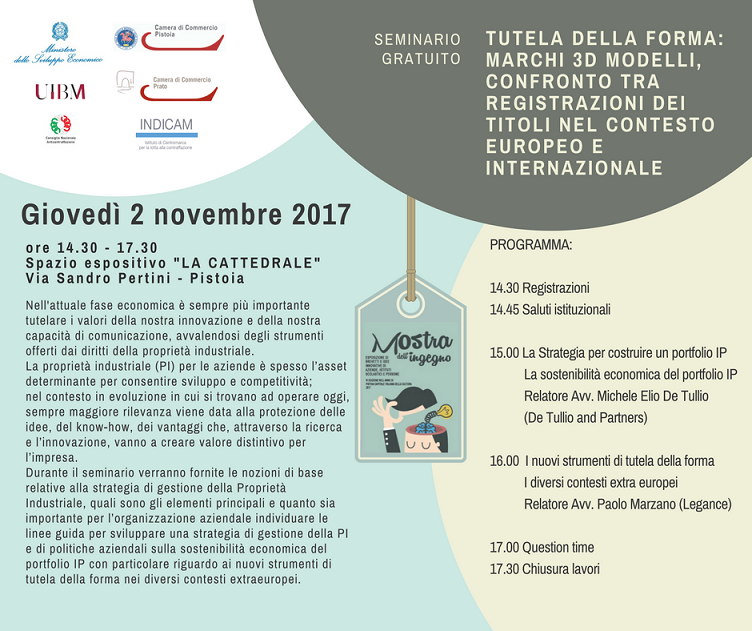 Il seminario, organizzato dall' UIBM, si terrà il 19 ottobre 2017 dalle 16.30 alle ore 18.00 presso la sede dell'UIBM, Sala al Pubblico - Via di San Basilio, 14 - Roma.
