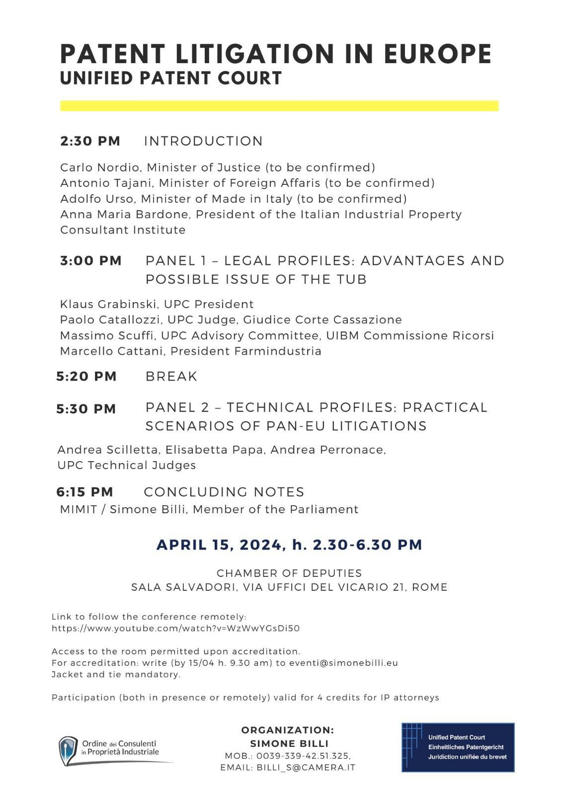 L'evento è accreditato presso il Consiglio dell’Ordine dei Consulenti in Proprietà Industriale per 1 credito formativo in materia di Brevetti/Marchi.